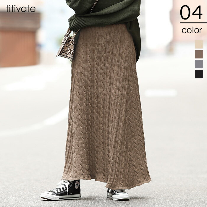 [ボディにフィットできれいなライン] [ニットスカート タイト ロング ミディ ミモレ ロングタイト ケーブルニット 上品 きれいめ 模様 柄 無地 ウエストゴム ] [ボトムス スカート] ケーブルニットタイトスカート [181233]