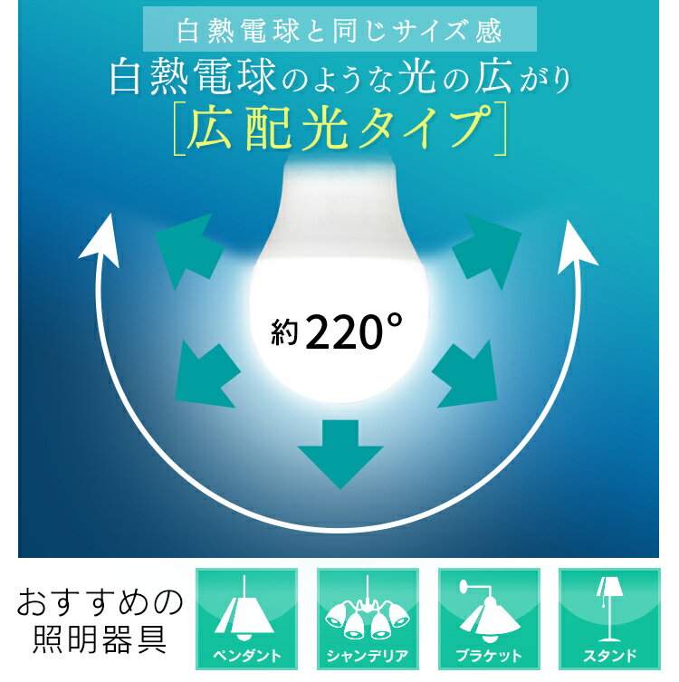 白熱電球のように光が広がる、広配光タイプのLED電球です。