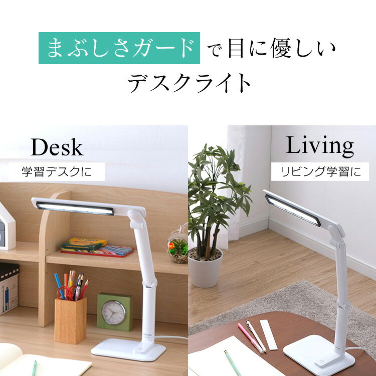 「まぶしさガード」採用で、手元は明るく、光源はまぶしくない、目にやさしいLEDデスクライトです。